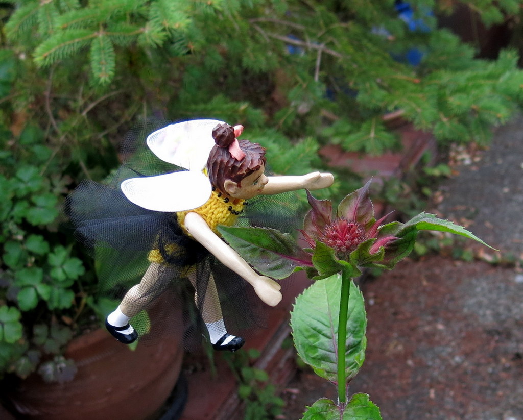 Mjn you have made us all smile! We are pleased that your bee balm is in bloom…your patience and nurturing rewarded! And we love your special ensemble!