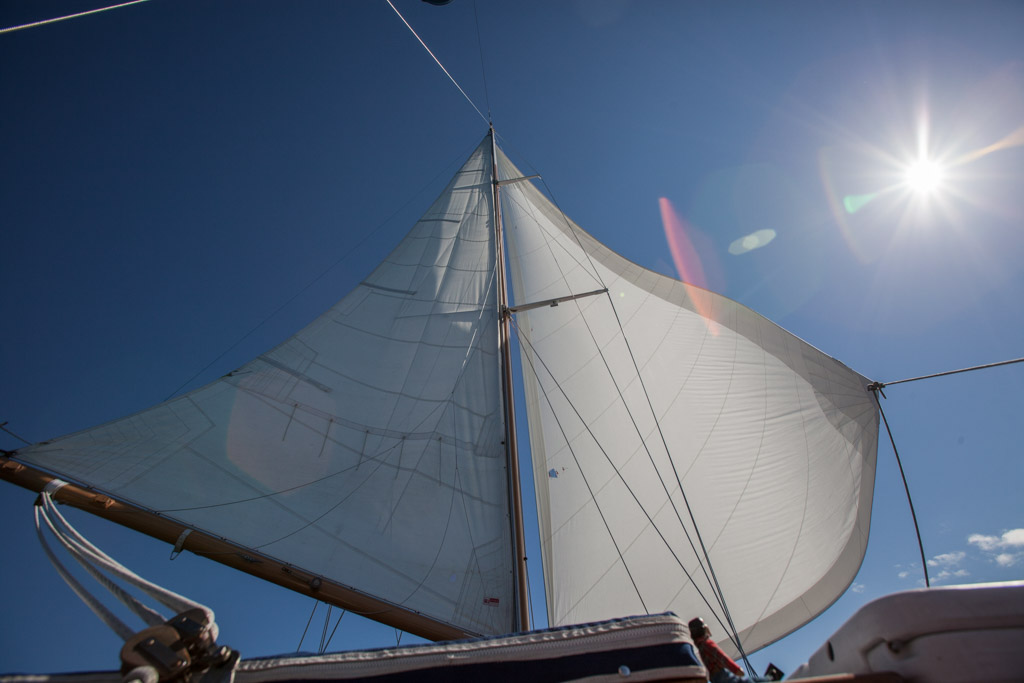 The foresail was frequently raised as it helped stabilize the boat even when motoring to give the passengers a more comfortable ride.