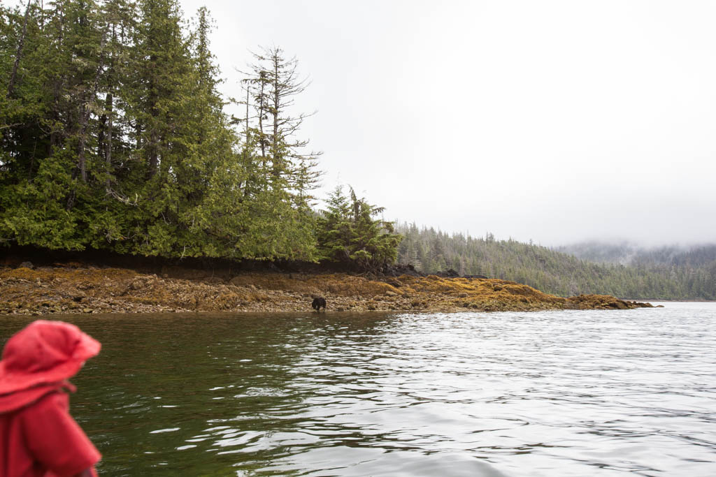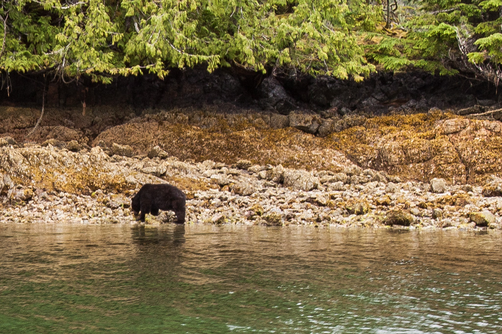 At the South end of Dolomite Narrows, Tansy saw a bear meandering along the edge of the shore turning over rocks looking for eels and crabs, (click here for a map of the location).