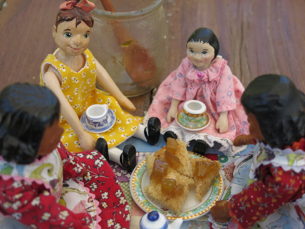 1. Great “paring” of the Hittys with a pear party. Leave it to them to turn an unfortunate browsing mishap into a fun gathering. Those little teacups and plate on that wonderful wee quilt is picture perfect. So lovely to see Zipporah out and about with Min, Gilly and the twins.