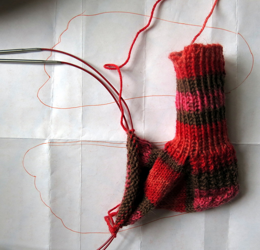 A tracing of the actual feet obtained, and the socks begun…