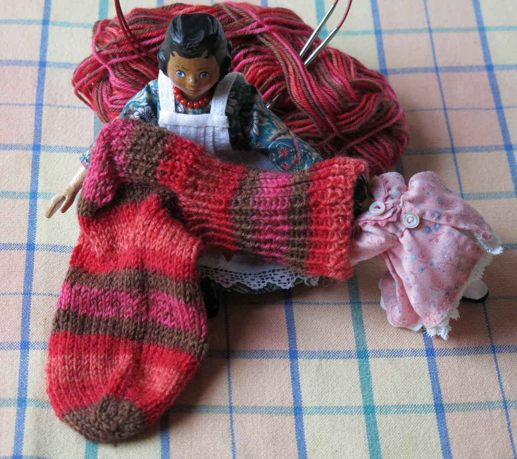 Rose is always willing to help with a knitting project, and provided much encouragement with the latest pair of socks (though she, like the rest of the Hittys, always optimistically refers to hand-made socks as Hitty Sleeping Bags).