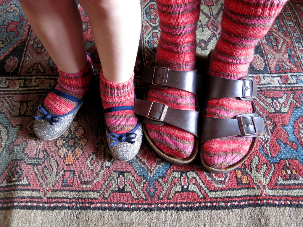 Your multigenerational socks are divine!! This reminds me that it is time I knitted a new pair of socks for our grandson! He loves handknit socks. And, so does his Daddy…. LOL… time to get the knitting needles flying.Thank you for the inspiration. I love your smock. Did you make it?