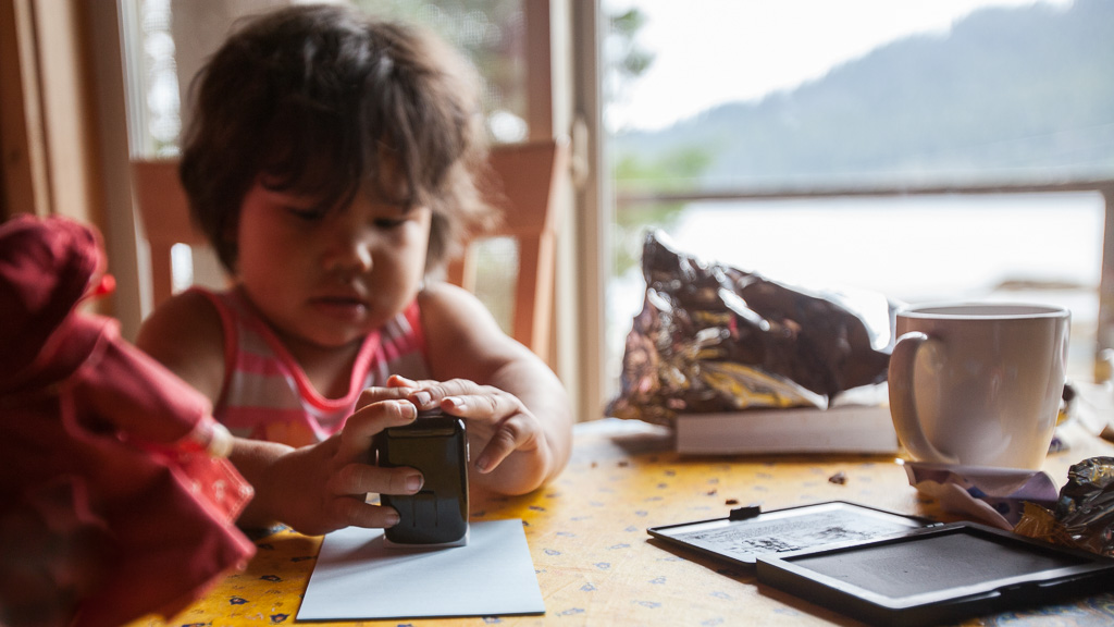Tansy doesn’t have a Haida passport, so Tanu Xoya stamped a piece of paper for her!