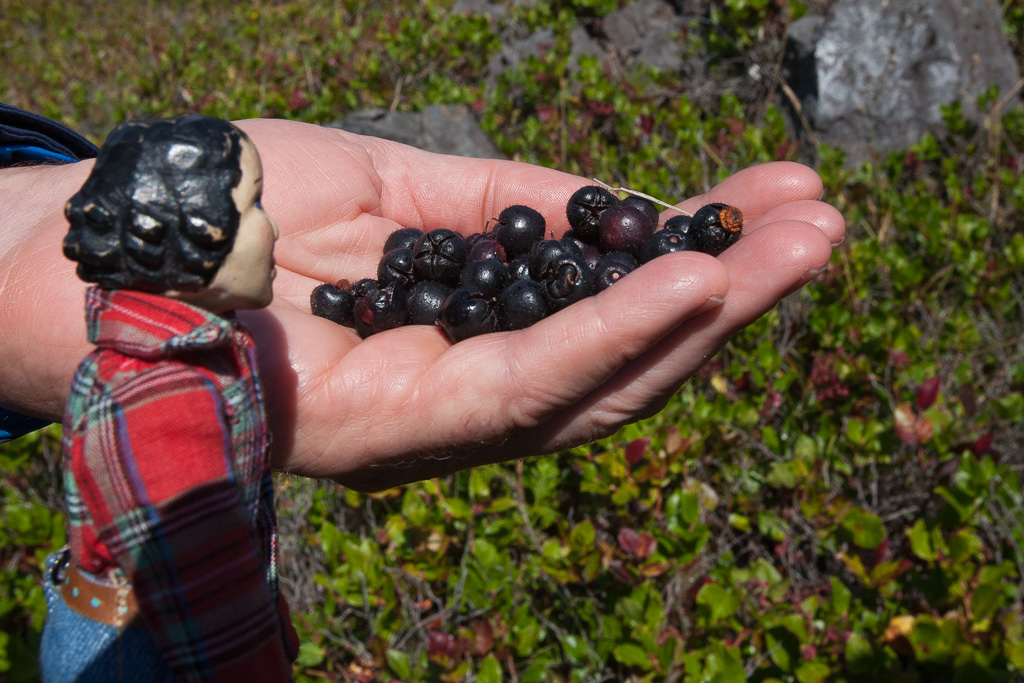 Salal is an interesting evergreen plant, and successive stages of the fruit can all be present on the same plant.  The waxy white flowers turn into little green fruit, a bit bigger and they turn red  …