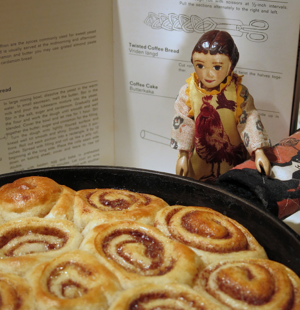 Today is National Cinnamon Bun Day in Sweden, one of our favourite culinary traditions. Constance helped get the right page in her favourite recipe book and rustled up the ingredients…