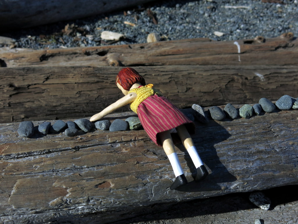 Aurelia is enchanting! Perhaps the wooden dolls like to commune with the Beings that are still humming in the driftwood? How lovely to be out at the beach in the sunshine!
