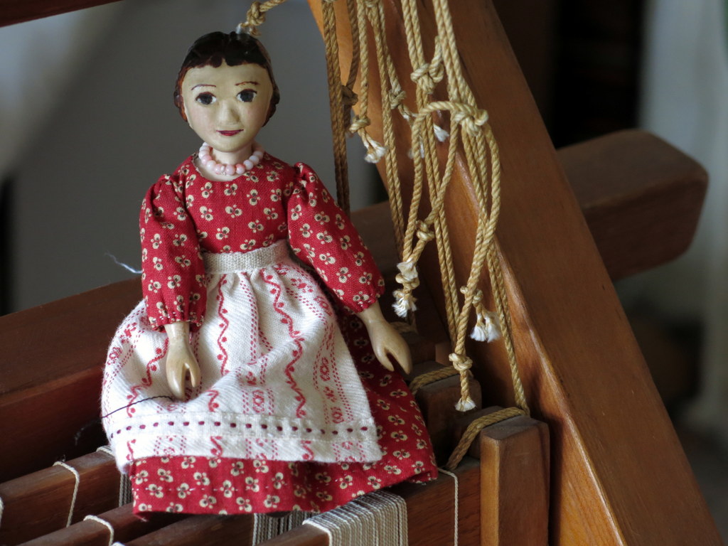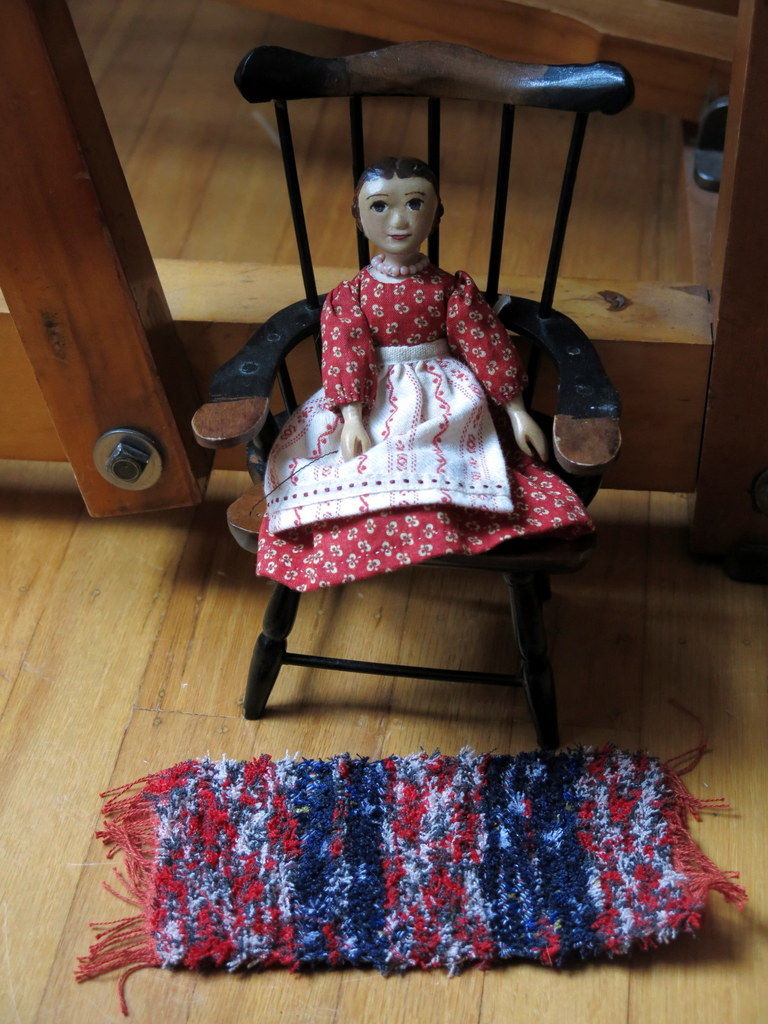 • A neighbour gave us the wee chair, and we love it though it is the “wrong” scale for Hitty, they look so nice perched in it! Yes the loom is a lovely piece of history in my family…and responsible for many of the rugs I walked on in my childhood. Perhaps even responsible for my interest in manufacturing textiles, and for making “rags” live again!