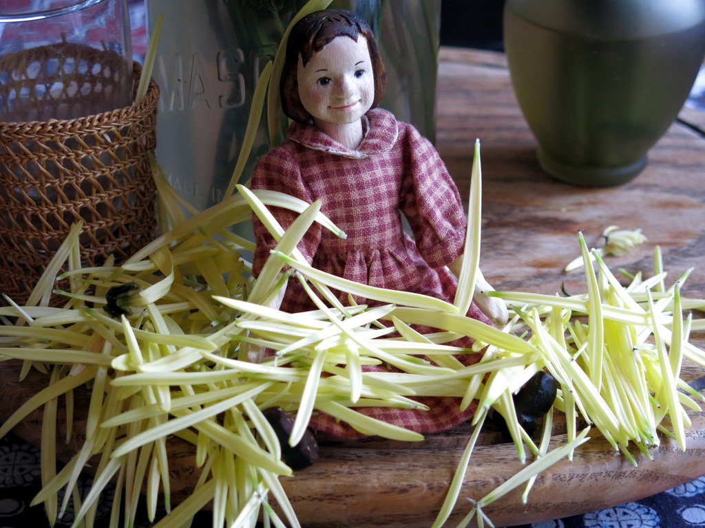Ahhhh, the girls and I also went flower picking yesterday…the last of the zinnias and wild sunflowers now grace our table. Your Amelia is a wonderful blossom all on her own.