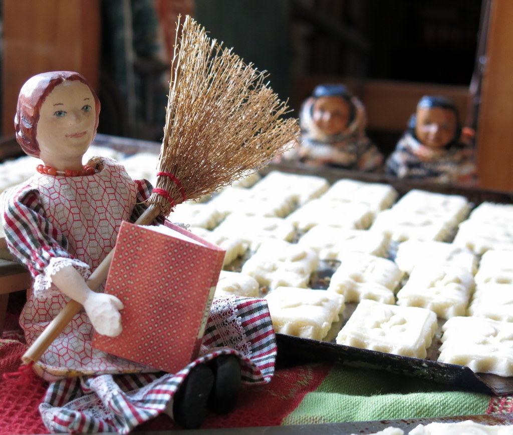 For about five years (ever since the Quimper Hitty human inherited a couple of Springerle rolling pins), every December we decide to make these special European Christmas cookies. We locate the recipe, assemble the ingredients, and read the instructions….then we get to the part that says the baked cookies have to sit for 6 – 8 weeks before eating. Drat. This year, Hattie, one of my favourite baking companions, piped up the last week of October.