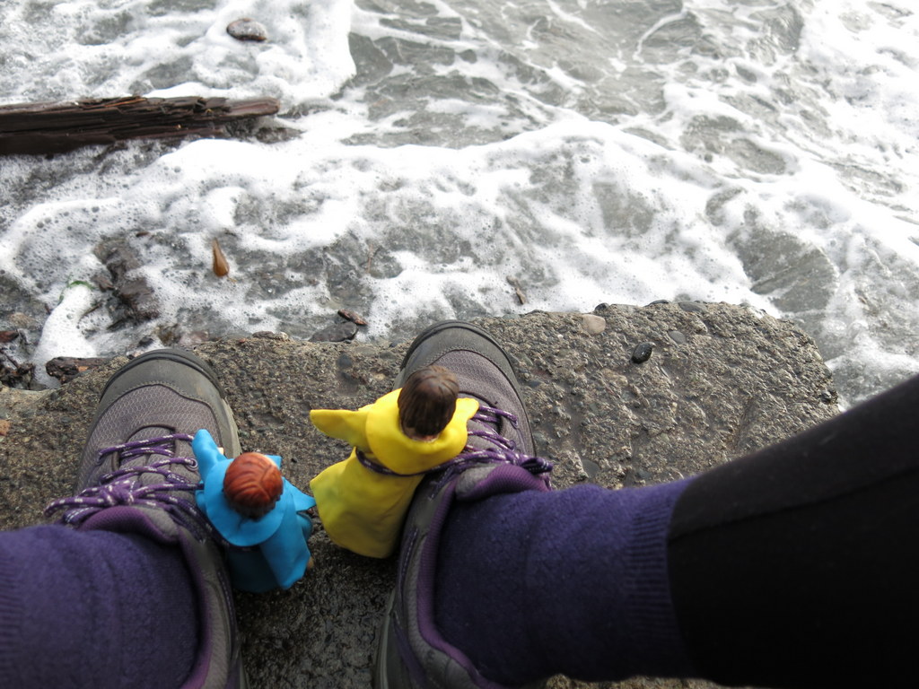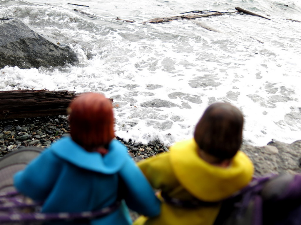 The girls were lashed to my shoelaces so they were safe! They did get a few splashes, but their excellent raincoats protected them from the salt spray!
