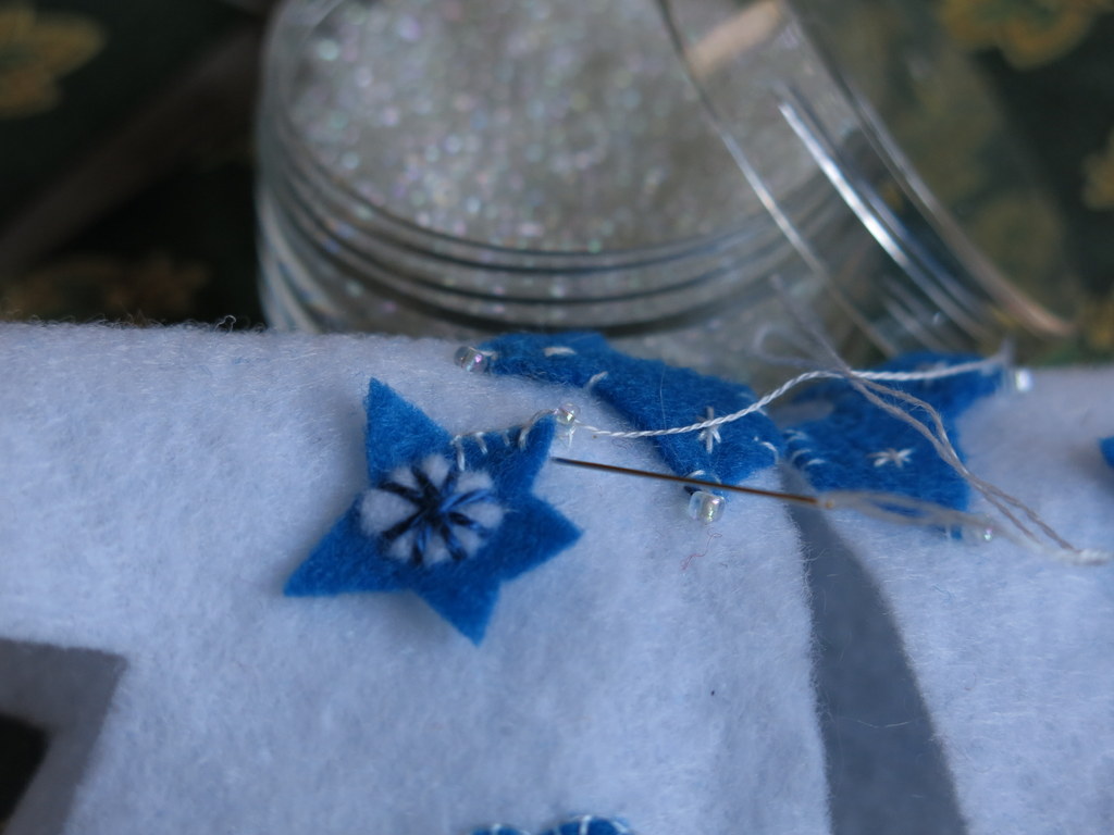 So, inspired by the felt stars, I dug out the very useful felt coat pattern and started to stitch.