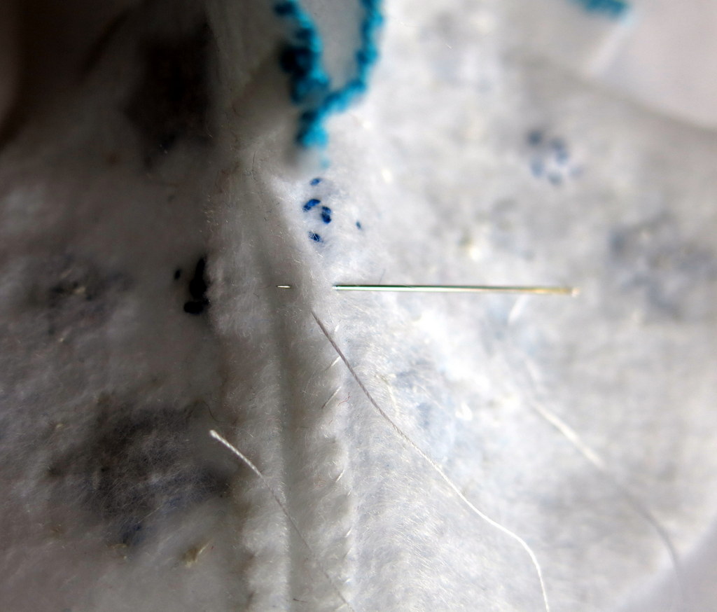I sewed the seams using back-stitches, and then overcast the seam allowances, attaching them to the coat proper.  With the fabric being felt, this step wasn’t necessary to prevent raveling, but it was helpful to reduce bulk – especially in the sleeves.