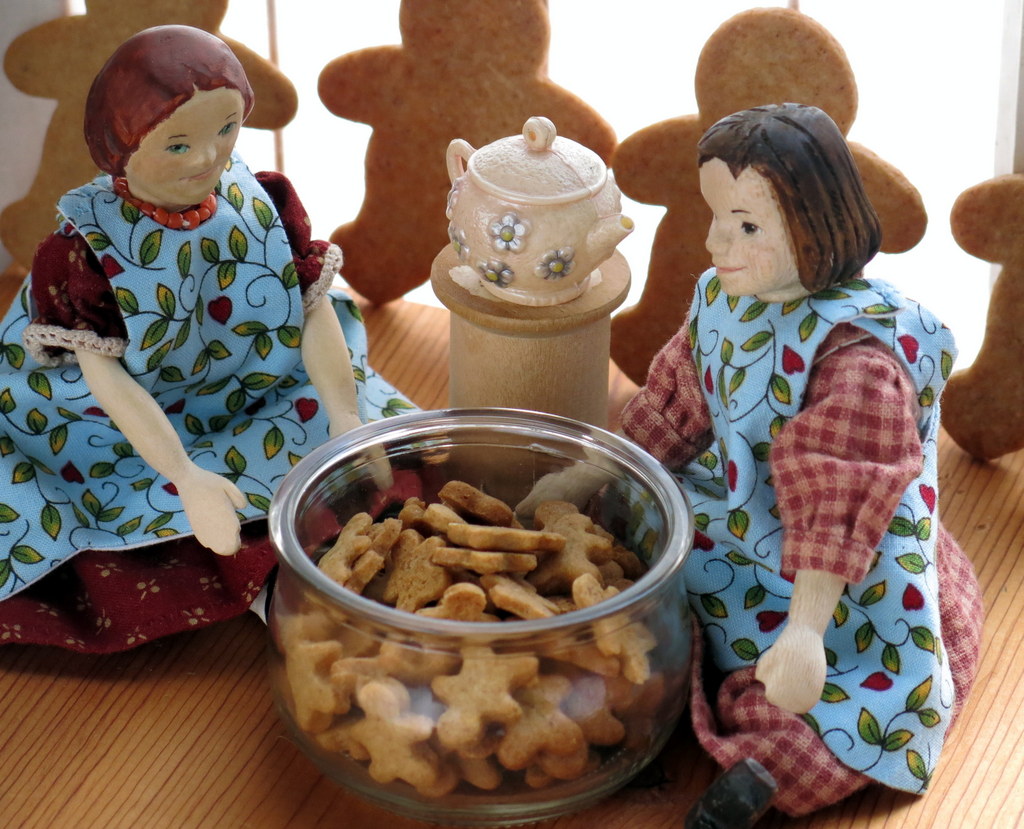 1. Hattie and Amelia do make a wonderful team. They both have smiles that portray their happiness in their projects. That tiny rolling pin, cookie sheet, and those amazing baked cookies in the cookie jar are Hitty perfection.