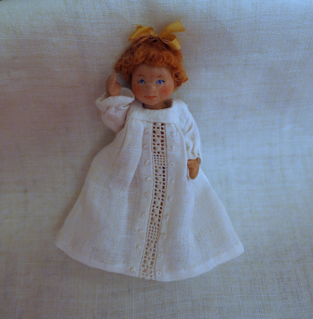 oh so precious. That tiny nightgown is just lovely. YOu are so very talented and little Flora is a very well cared for baby girl.