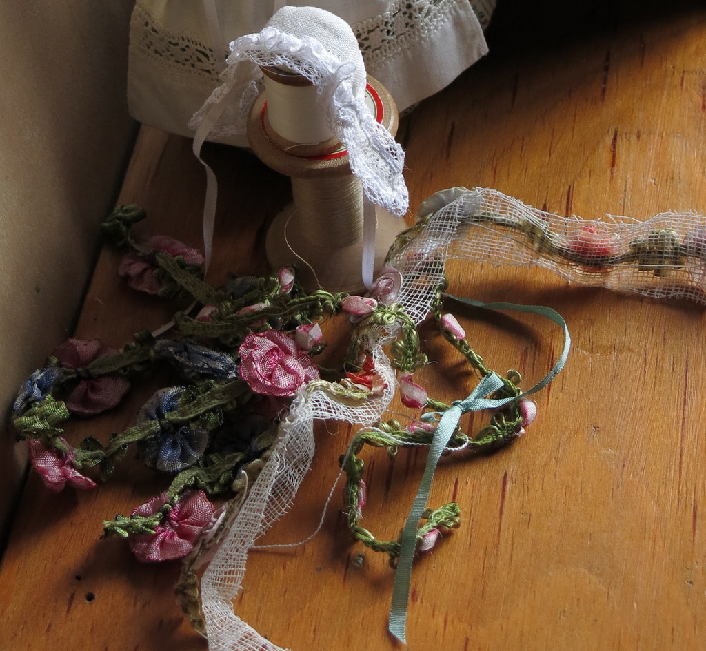 Trimmings! Another friend gave me some lovely silk ribbon flowers – I used one medium-sized flower over each ear.