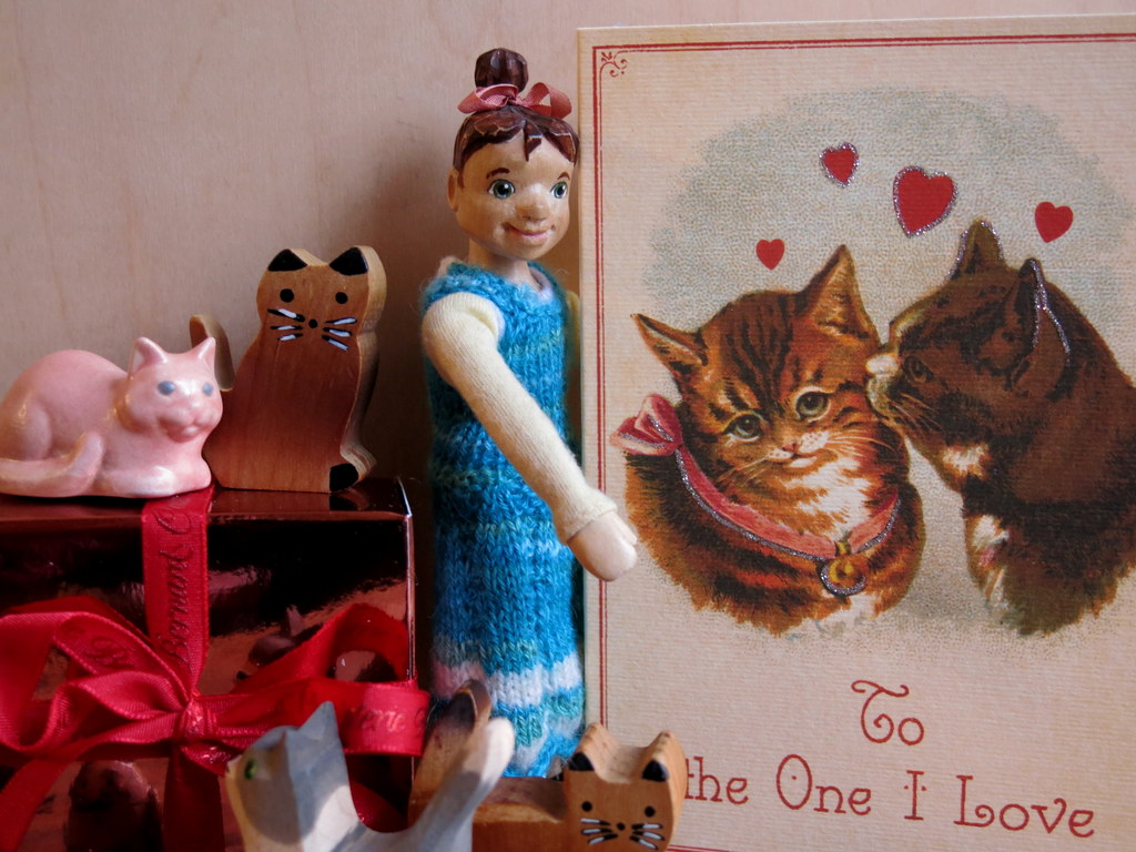 Happy Valentine Quimper girls. Min is the sweetest Valentine girl, with her kittens, flowers and chocolate