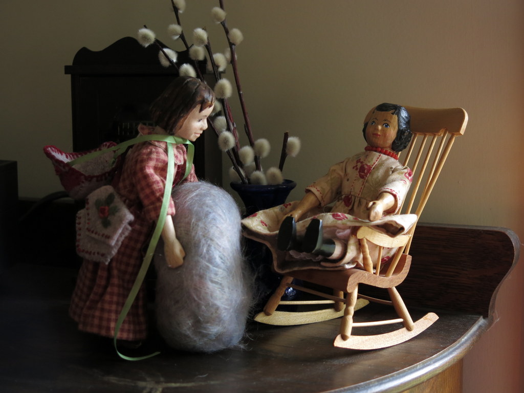 Thanks very much to one of our Hitty friends who made the wonderful bonnet and purse, and to another who provided the pattern for the raglan cardigan…I think Rose is going to be busy knitting for some time to come!