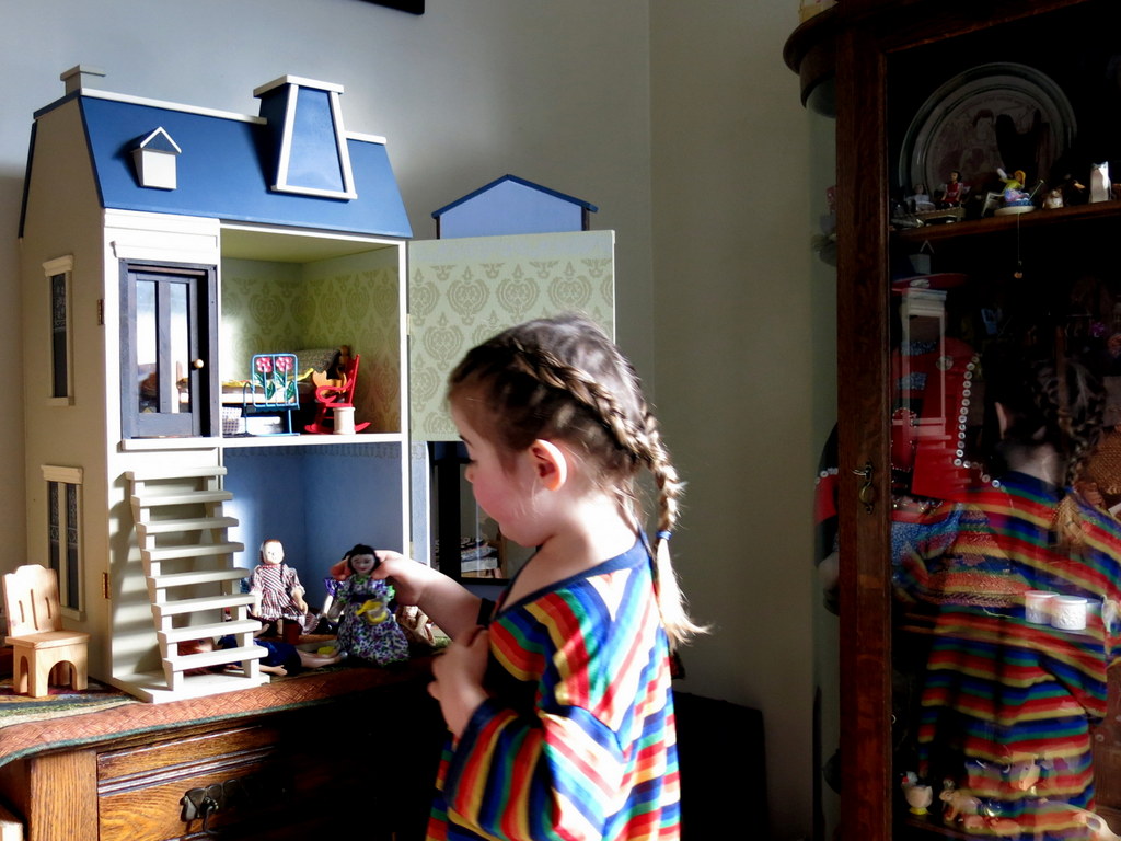 What a movable feast! I love The Queen of the Flowers’ beautiful braids. She’s growing up so fast! Thank you for sharing the Quimper Hitty adventures at the St Denis house.