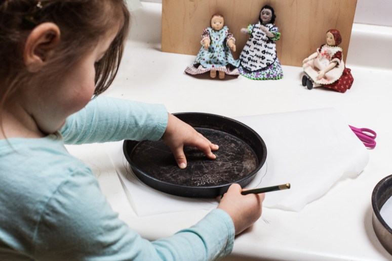 …and watched as the The Queen of Flowers traced circles around three cake pans onto baking parchment.