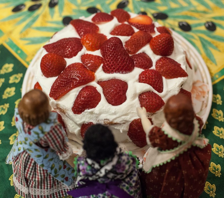 1. Flowers need a place to grow. “The Queen of Flowers” of course gets dibs on the most perfect and beautiful garden of her choosing.…that is why she came to blossom and be fed in Quimperville. Speaking of being fed… This strawberry cake is befitting the Queen and her loyal, royal Hitty entourage.