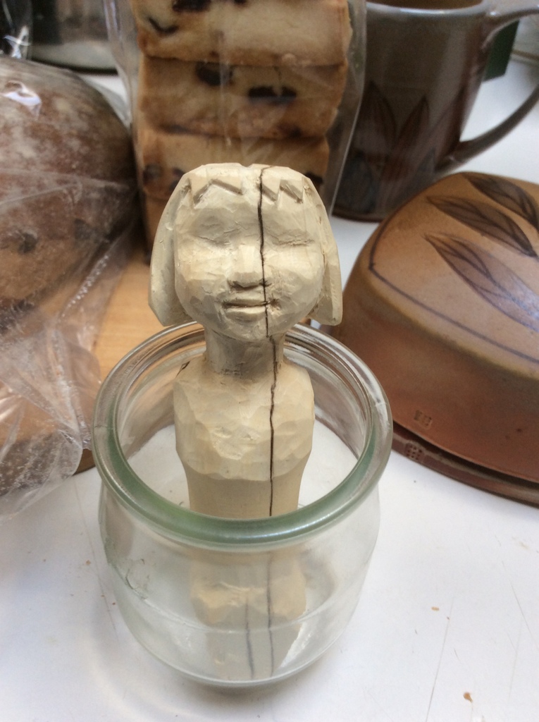 Thanks very much – I am lucky I have excellent teachers and also lucky that a cheerful girl was waiting to pop out of the chestnut! I am happy with the way my faces have been turning out…though the truth is I need to practice my joints and painting…not that I can’t do it, but that I feel such anxiety about doing it!