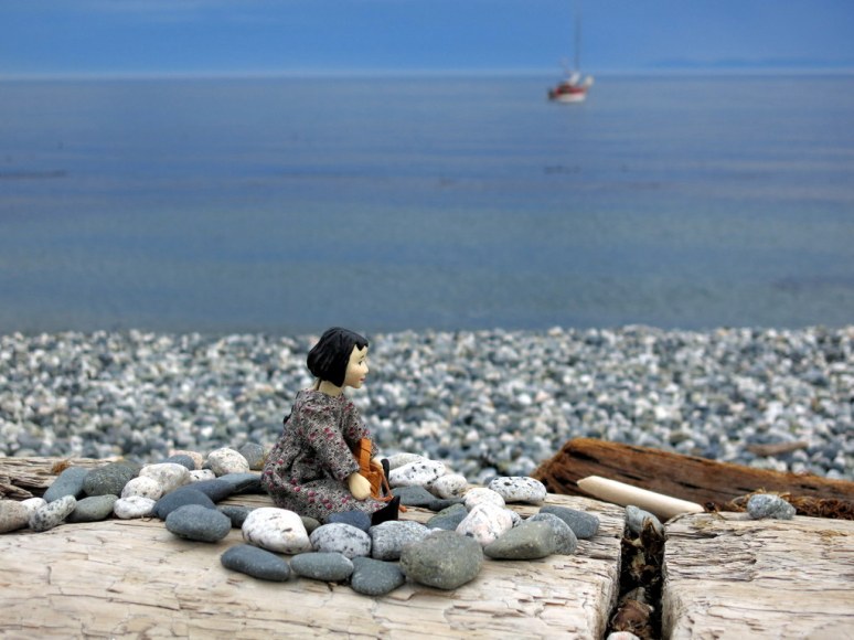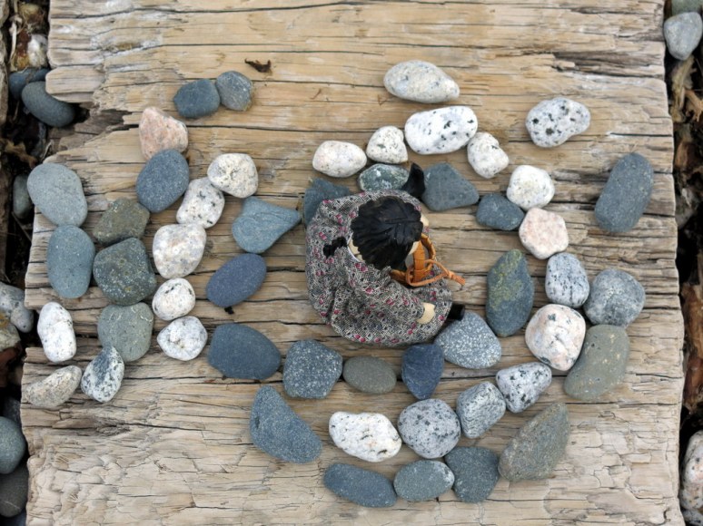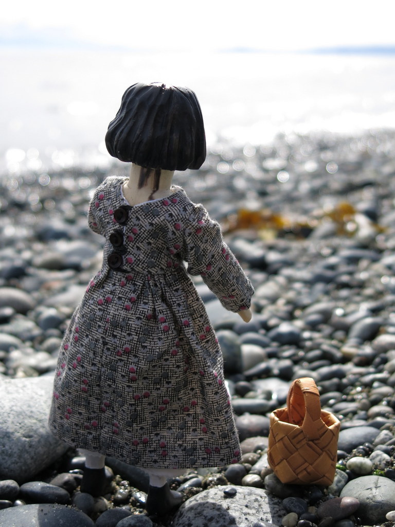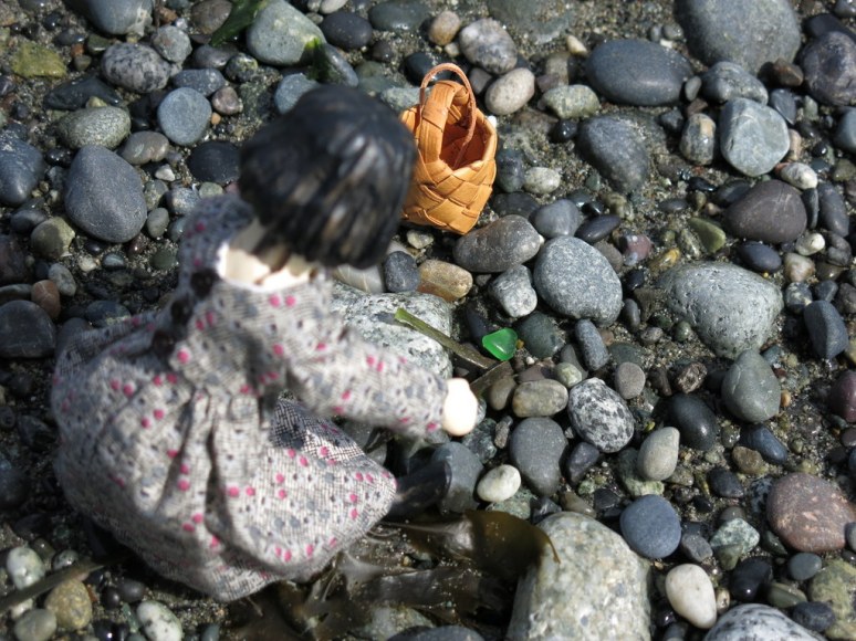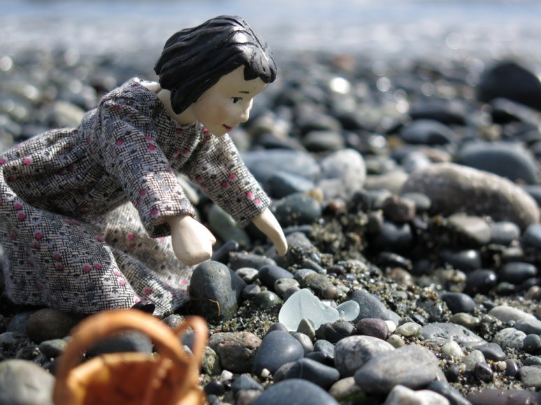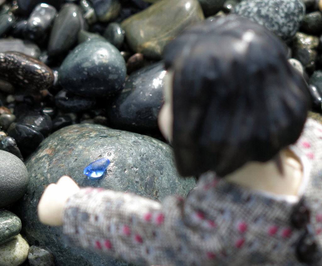 Nothing beats a treasure hunt. The beaches you live near are so different than the sandy beaches near me. They each off their own magic. The smooth pebbles with their striations and colors are as beautiful as sea shells. My Hitty’s would love to comb them and so would I. The sea glass is a treasure for sure. What a beautiful walk home.That little blue sea glass reminds me of a little bird.