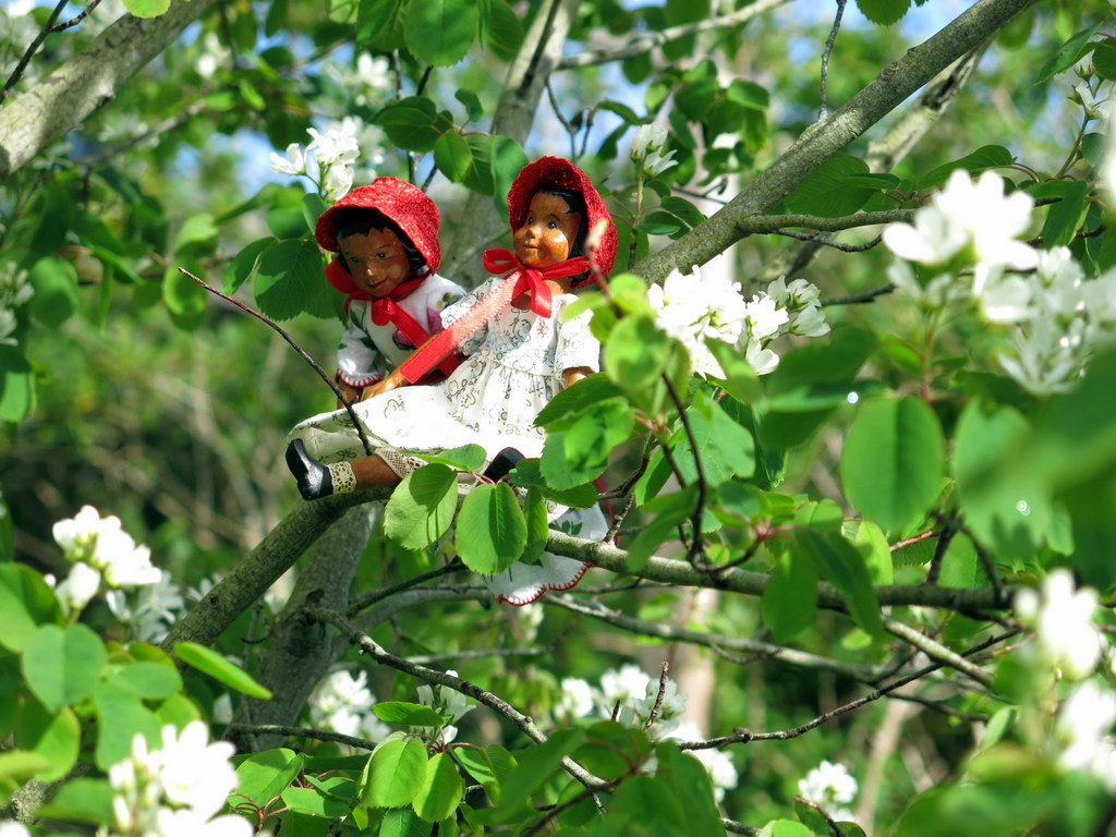 Indeed life is pretty good when up a tree, at one with nature with a friend. Wearing their fancy new bonnets as well just adds to the charm of these two.
