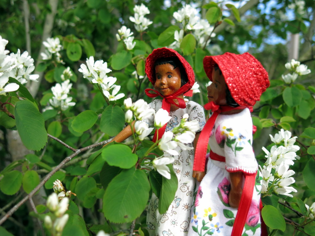 We are all enjoying the Saskatoon Berry tree, the view of which which was previously blocked by the Apple tree! Red bonnets make everything more delightful, we think!