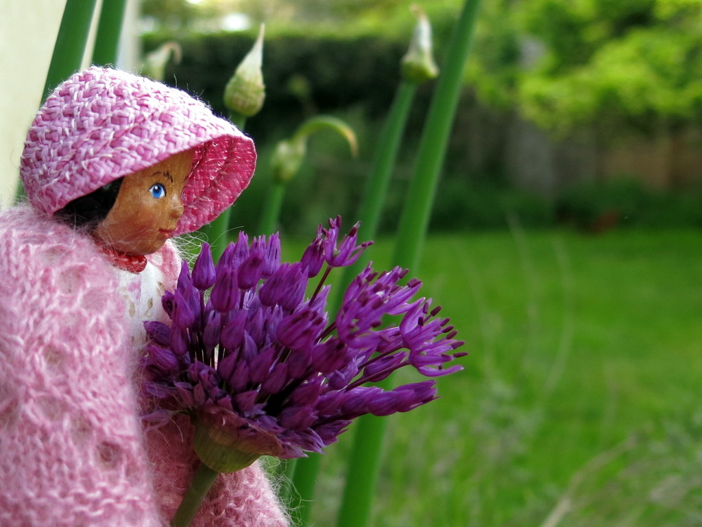 Rose thanks you – she is especially happy with her pink straw bonnet, and wanted to wear it in the garden, even though it doesn’t especially go with wooly shawls!