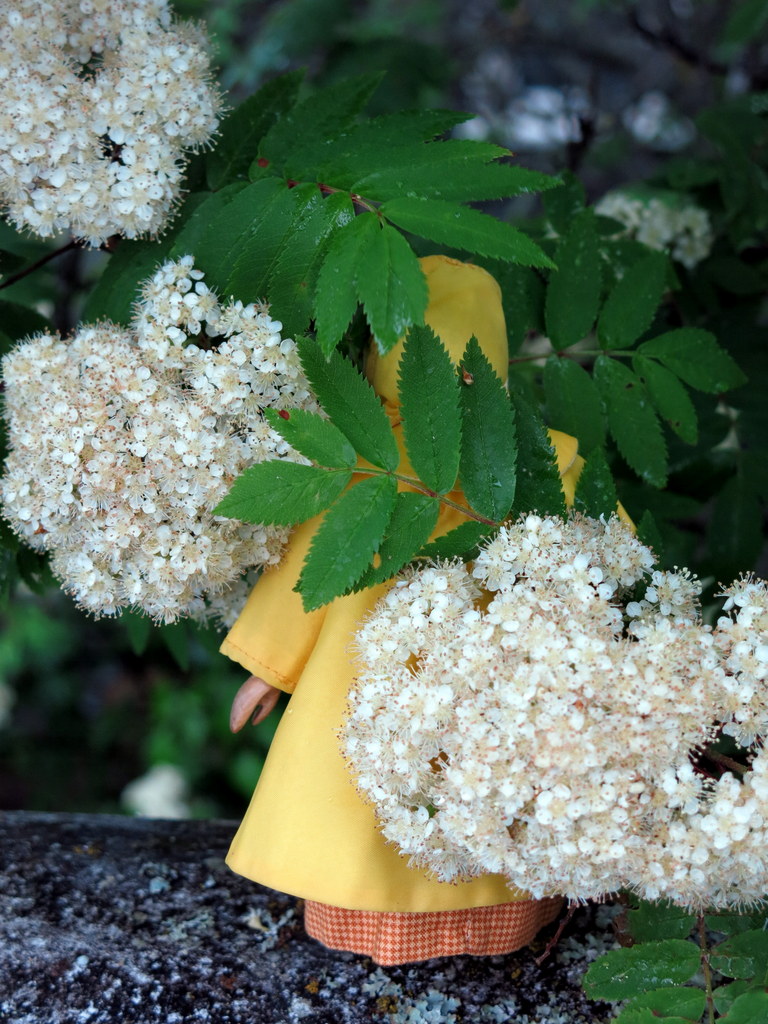 • The raincoat is extremely useful in this climate, and this year in particular! Rain does saturate, and make the colours glow… Rowan flowers are meant to stink, but we don’t find them too bad!