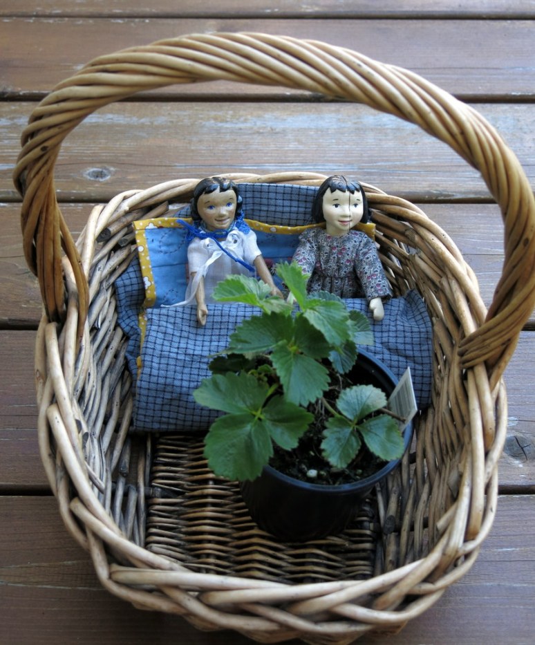 • That is their favourite carrying basket, not least because of the wonderful, versatile and beautiful quilt that lines the bottom! They are planning a strawberry garden, but have to figure out how to keep the deer away!