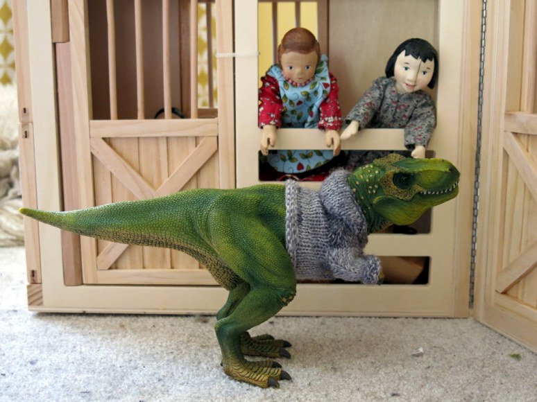 We just loved the barn, and yes about the scarily funny T-Rex… I think the Hittys aren’t going to ask for the sweater back any time soon!