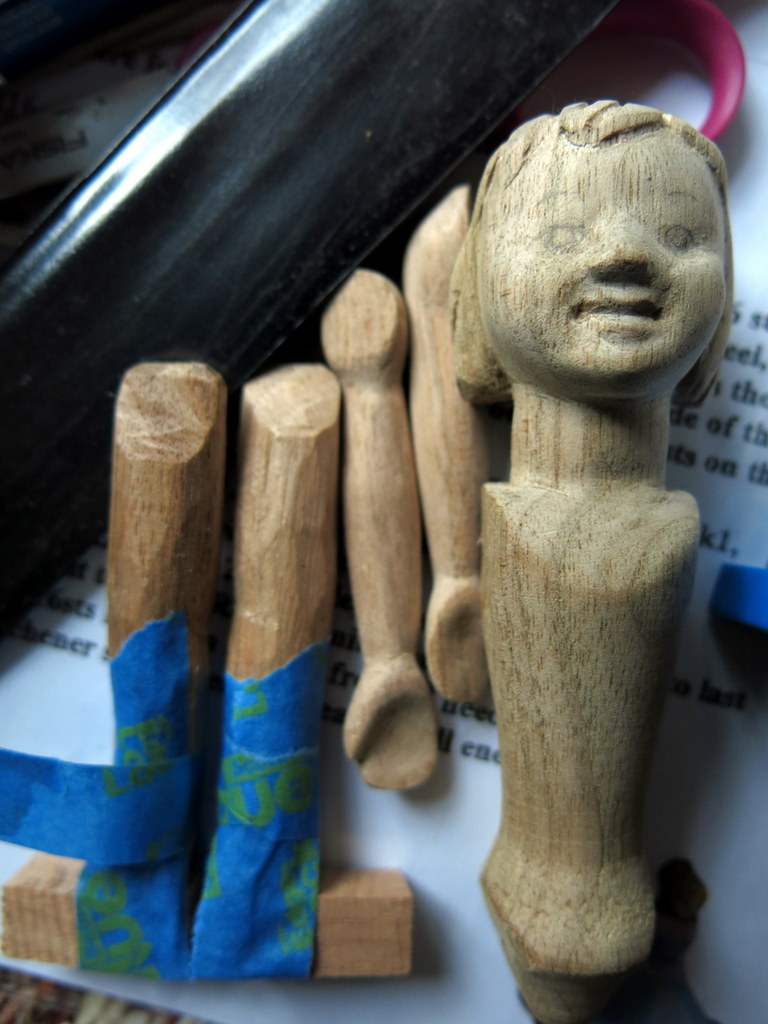The Quimper Hitty human has gone off on a sailing trip, accompanied by this incipient Butternut Hitty and a few other Hitty friends!