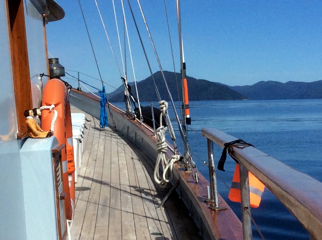 • We sailed and motored around the lower half of Haida Gwaii, in slanting rain and clear sunshine, flat calm and swelly seas, in zodiac and on the schooner – wow, what an experience!