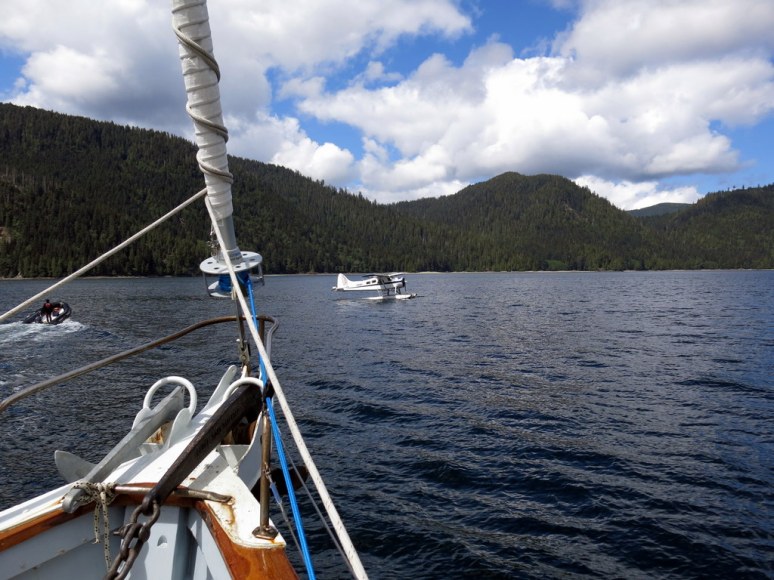 The Hittys and I got to travel to the schooner Passing Cloud along with the groceries! We flew down in a little float plane, landing not too close to the boat (plane wings and boat rigging don’t mix) and did a little zip over by zodiac.