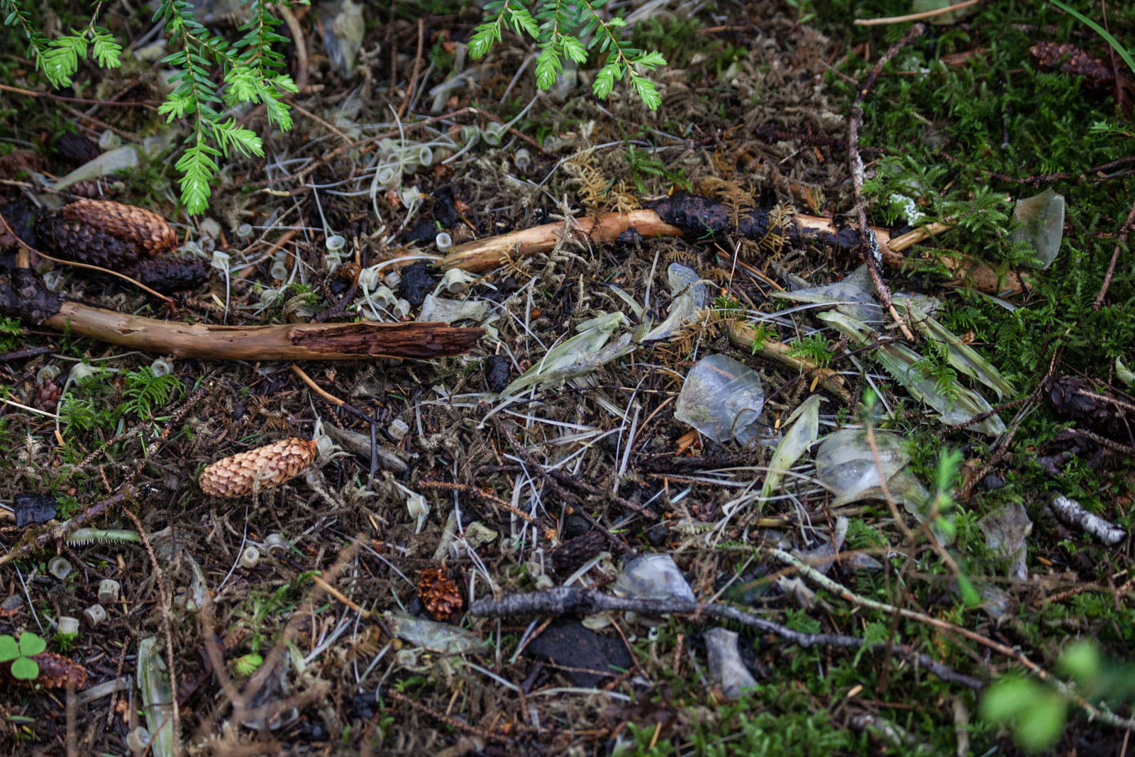 …and here are some fish bones in the forest – perhaps an eagle or a bear ate a salmon dinner at the edge of the creek!