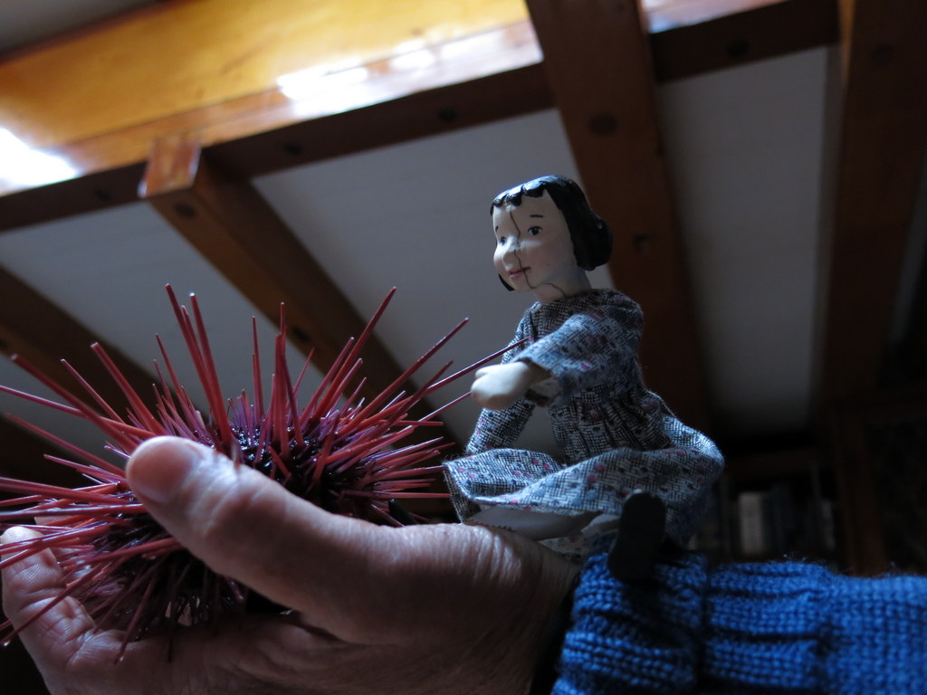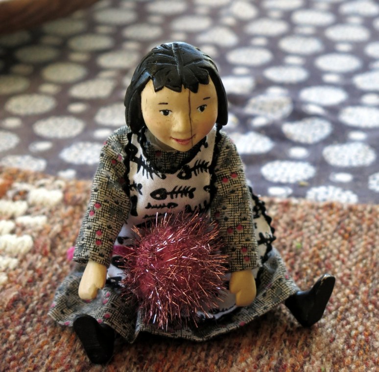 2. I loved the use of the fish skeletons on the bodice fabric! It distracted me from the sea urchin cat toy – I wonder if the makers of that knew they were producing sea urchins for dolls? Or, by any chance, is this perfect creature something you yourself sewed up! “I would not put it past you” as the English would say.