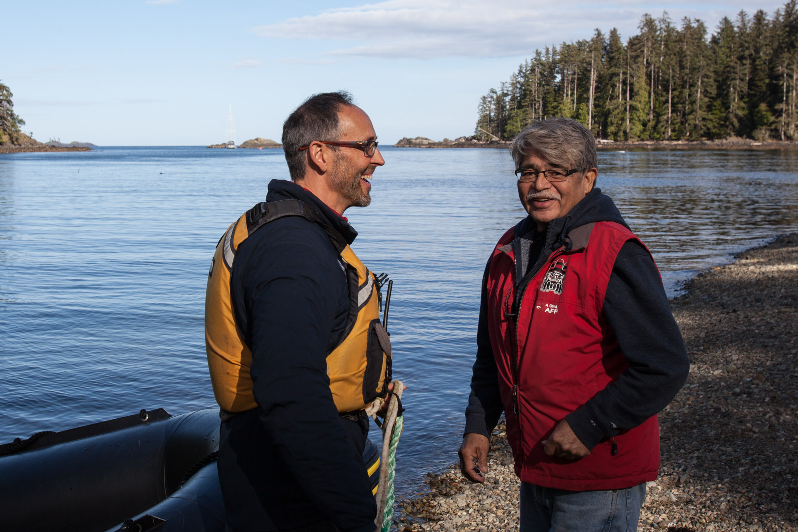 …and we met the Haida Gwaii Watchmen who live at the ancient sites, looking after them and teaching visitors about the ways of their ancestors who lived there before.