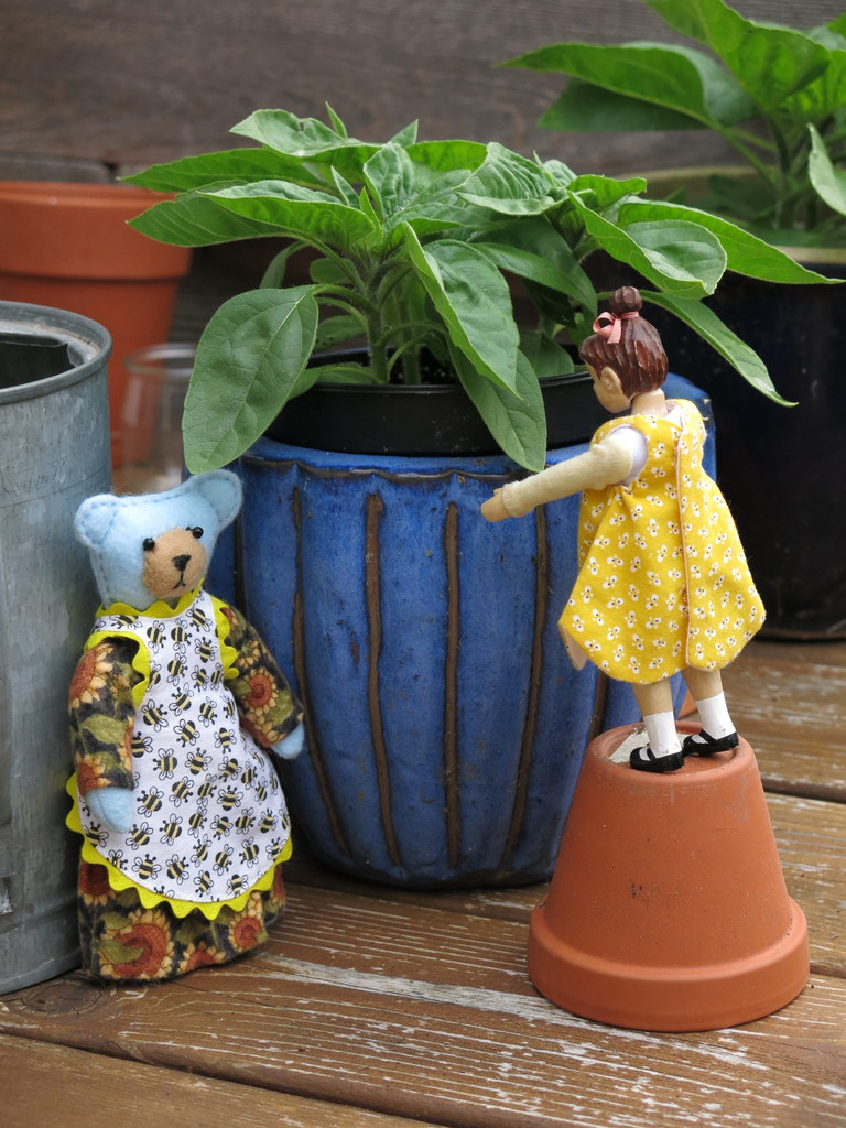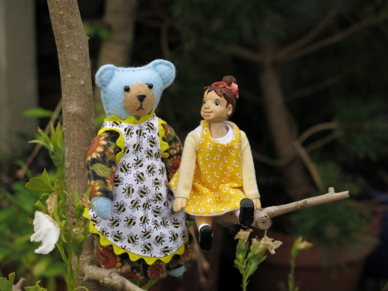 …however a scavenged Hitty sunflower dress and bee apron solved that problem.