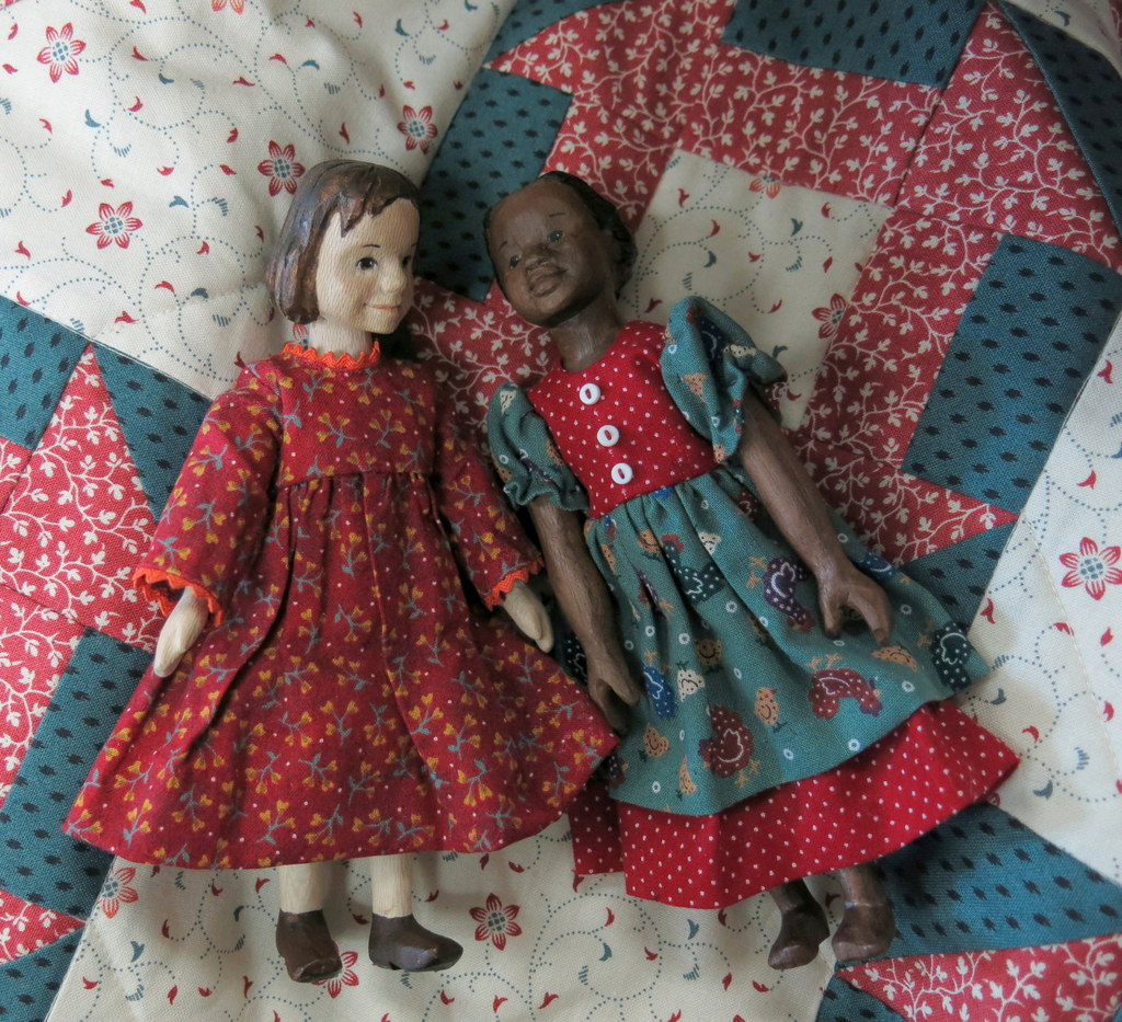 Amelia and Tuesday experimented on a sweet little quilt, but it was not quite little enough to take home to the Hitty cupboard…