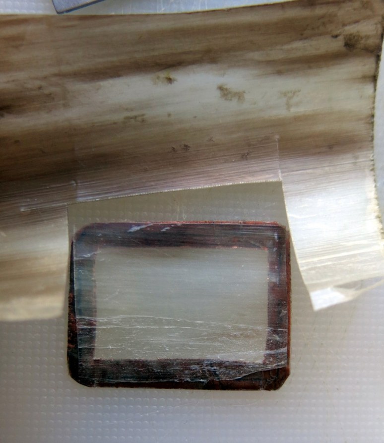 I cut a rectangle of cow horn and stuck it to the tape.