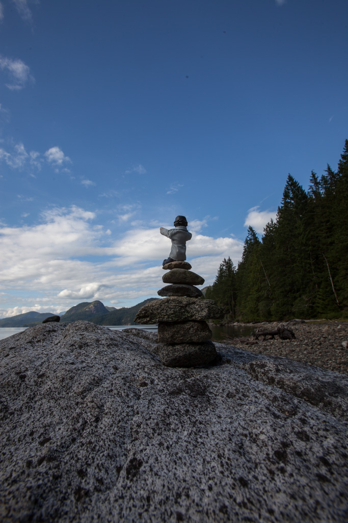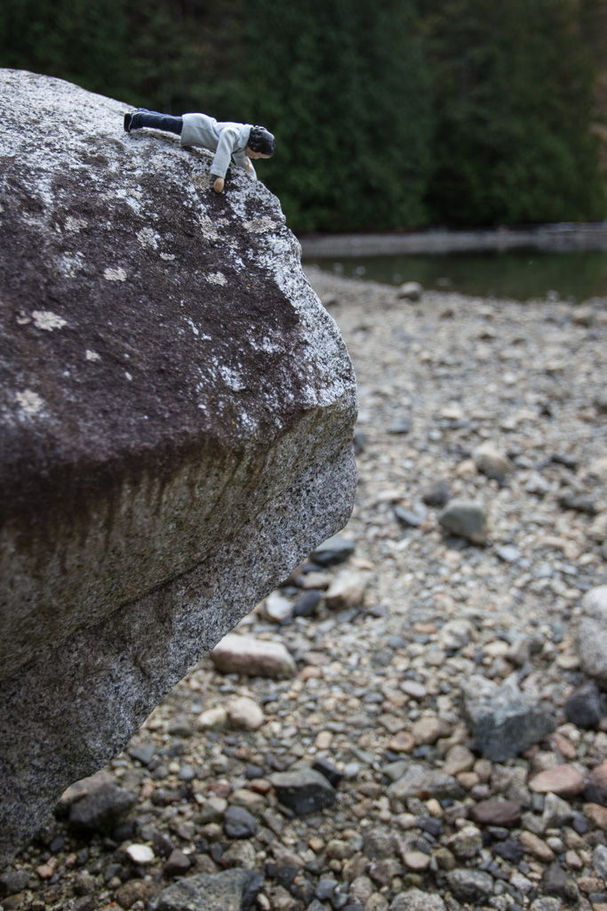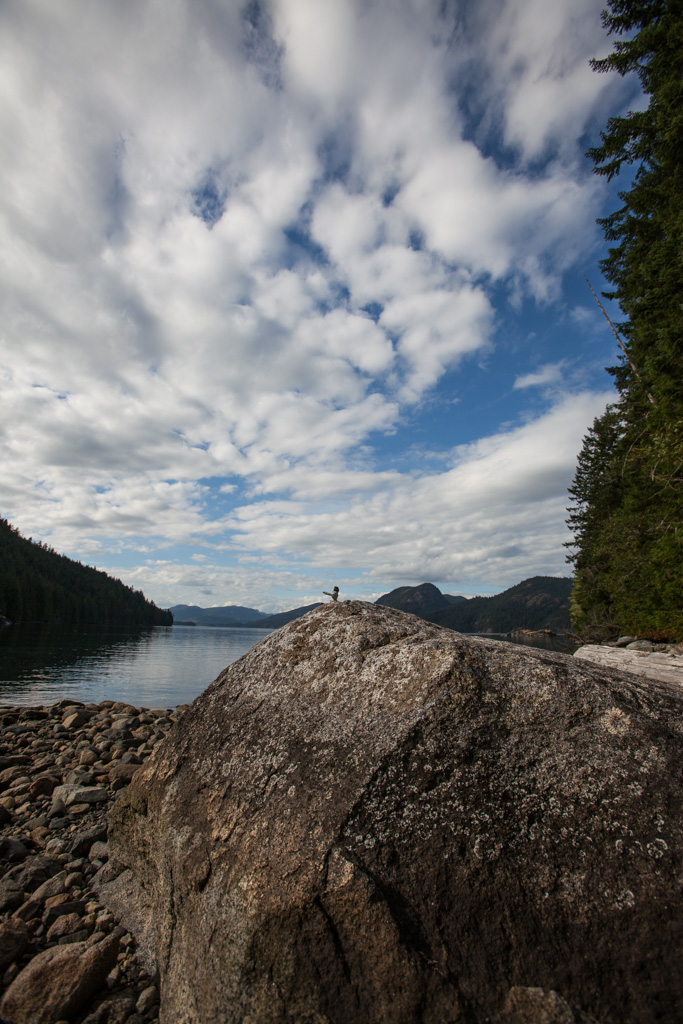 Large boulders sprinkled about the landscape were dropped there by glaciers tens of thousands of years ago.  They are known as Glacial Erratics and are all over the place – this one is on the shore…