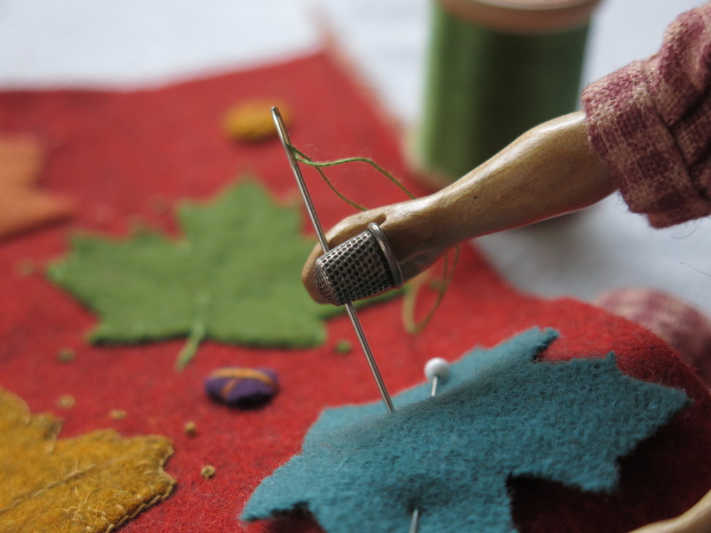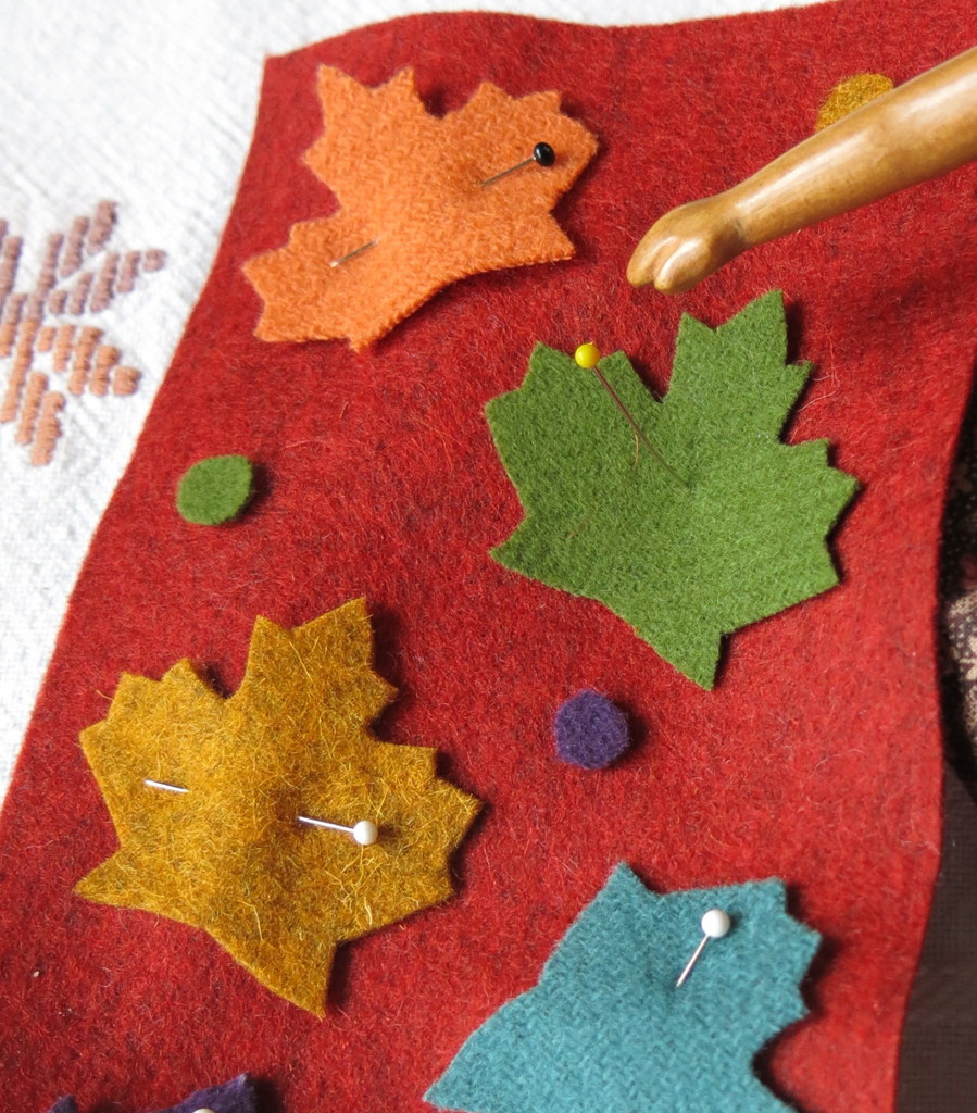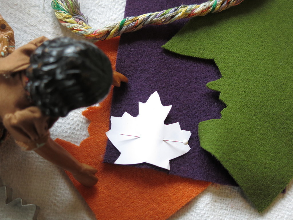 Rose got Agathe to trace the cooky-cutter and cut the leaf shapes out of felt…