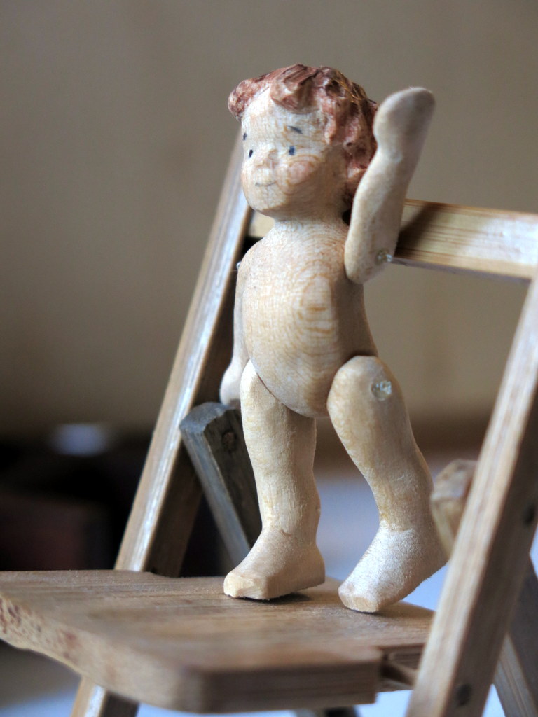 It is one of two sweet little bamboo folding chairs, given to us by a Hitty friend, very useful for small people, or extra guests.