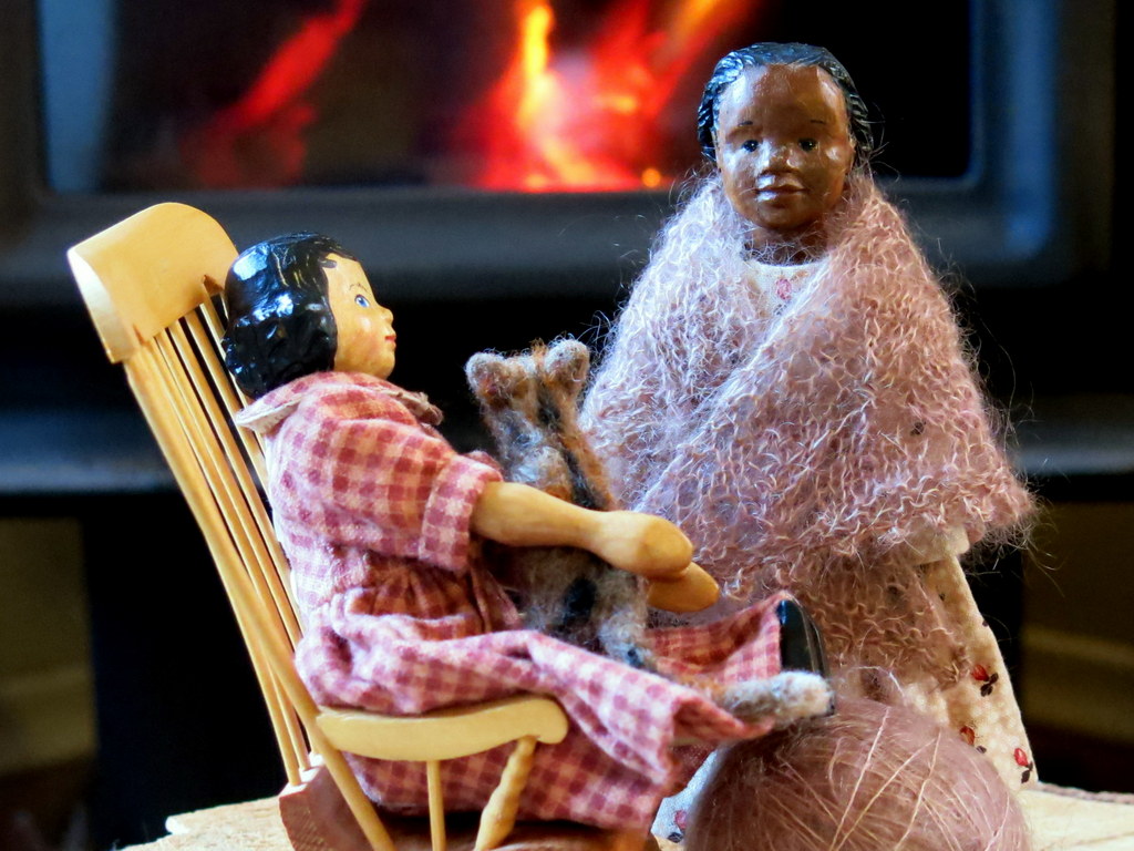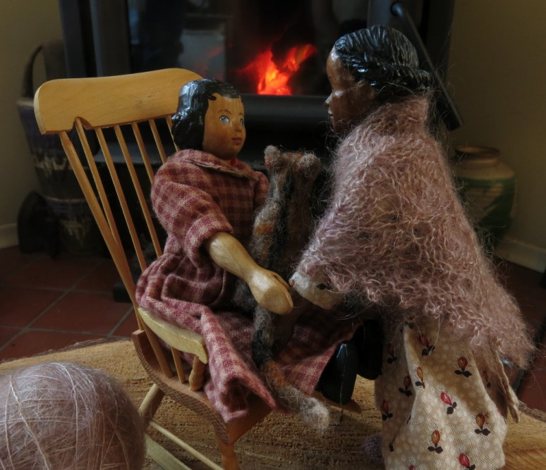 2. Rose is probably the most talented Hitty that I know! Tuesday looks quite fetching in her new shawl. So nice of the kitten to help with the project. Warm and cuddly photos!