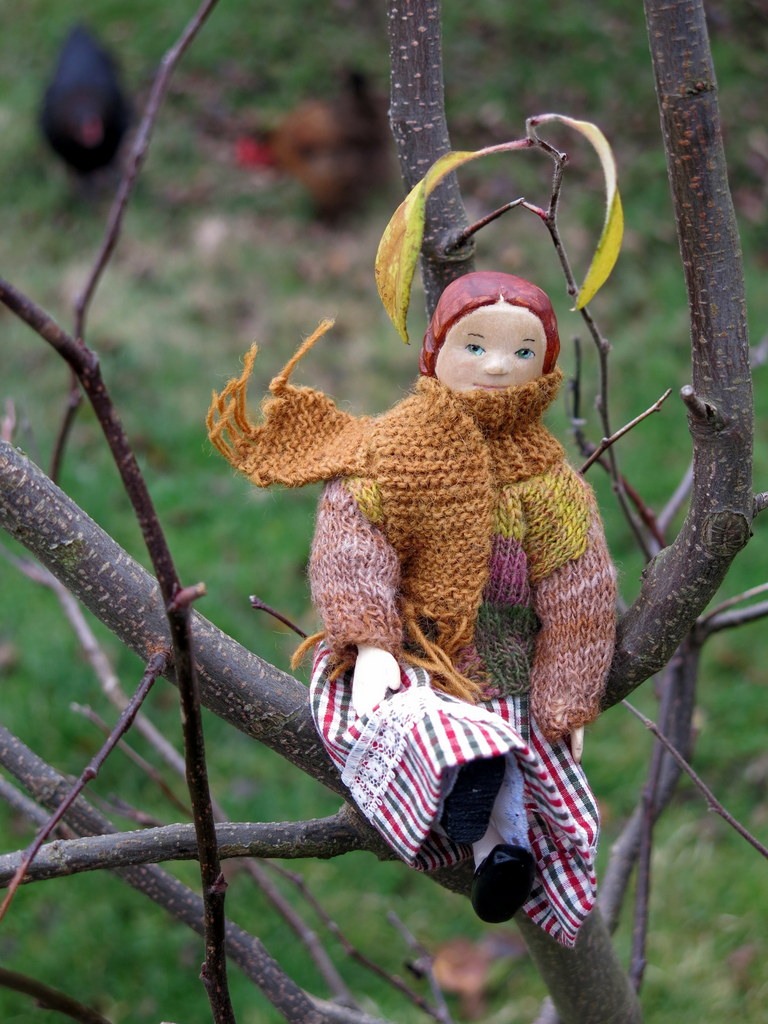 Hattie enjoys sitting in our quince sapling. Having been well watered all during the hot summer, it is now going dormant for the winter. Next year we hope to have fruit from our own tree…