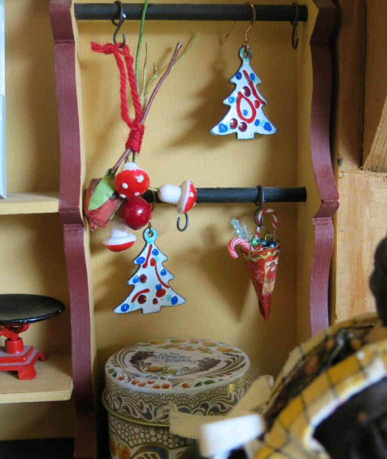 Gracia’s apron is lovely, hope she doesn’t get it dirty with all her holiday preparations. I see it is snowing at the Hitty cupboard too.