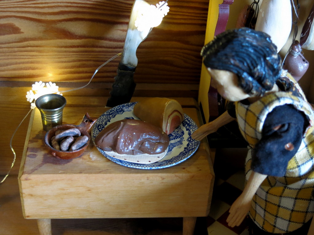 Gracia’s apron is lovely, hope she doesn’t get it dirty with all her holiday preparations. I see it is snowing at the Hitty cupboard too.