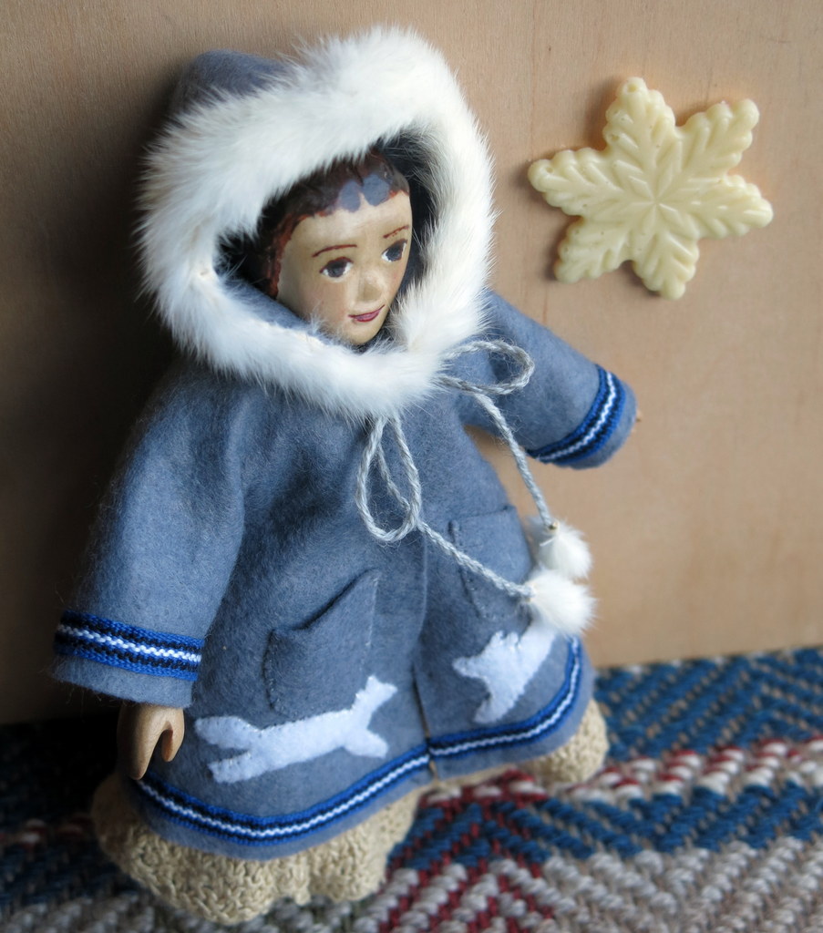 A friend of the Quimper Hitty human once lived in the far north of Canada. The friend heard that I was planning to take Constance on a little jaunt to her homeland, and thought I should make a specially warm coat. A pattern and some photos appeared in our mailbox…